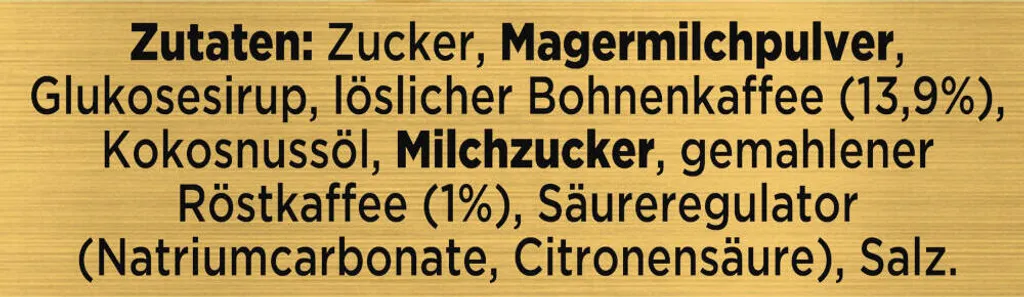 Nescafé GOLD Typ Cappuccino Cremig zart ist eine Instant-Kaffeemischung, die mit erlesenen Kaffeebohnen, Magermilchpulver und Zucker hergestellt ist. Für Ihren Genussmoment übergießen Sie das Pulver mit heißem, nicht kochendem Wasser und rühren um. Kleiner Tipp: Für extra viel Löffelschaum einen Moment warten und dann nochmal rühren. Fertig